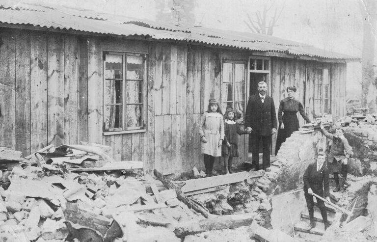 La terre bouleversée accueillit bientôt les premiers habitants rentrant d’exode. Ceux-ci s’abritèrent dans des baraquements peu salubres en attendant la construction de maisons plus décentes.